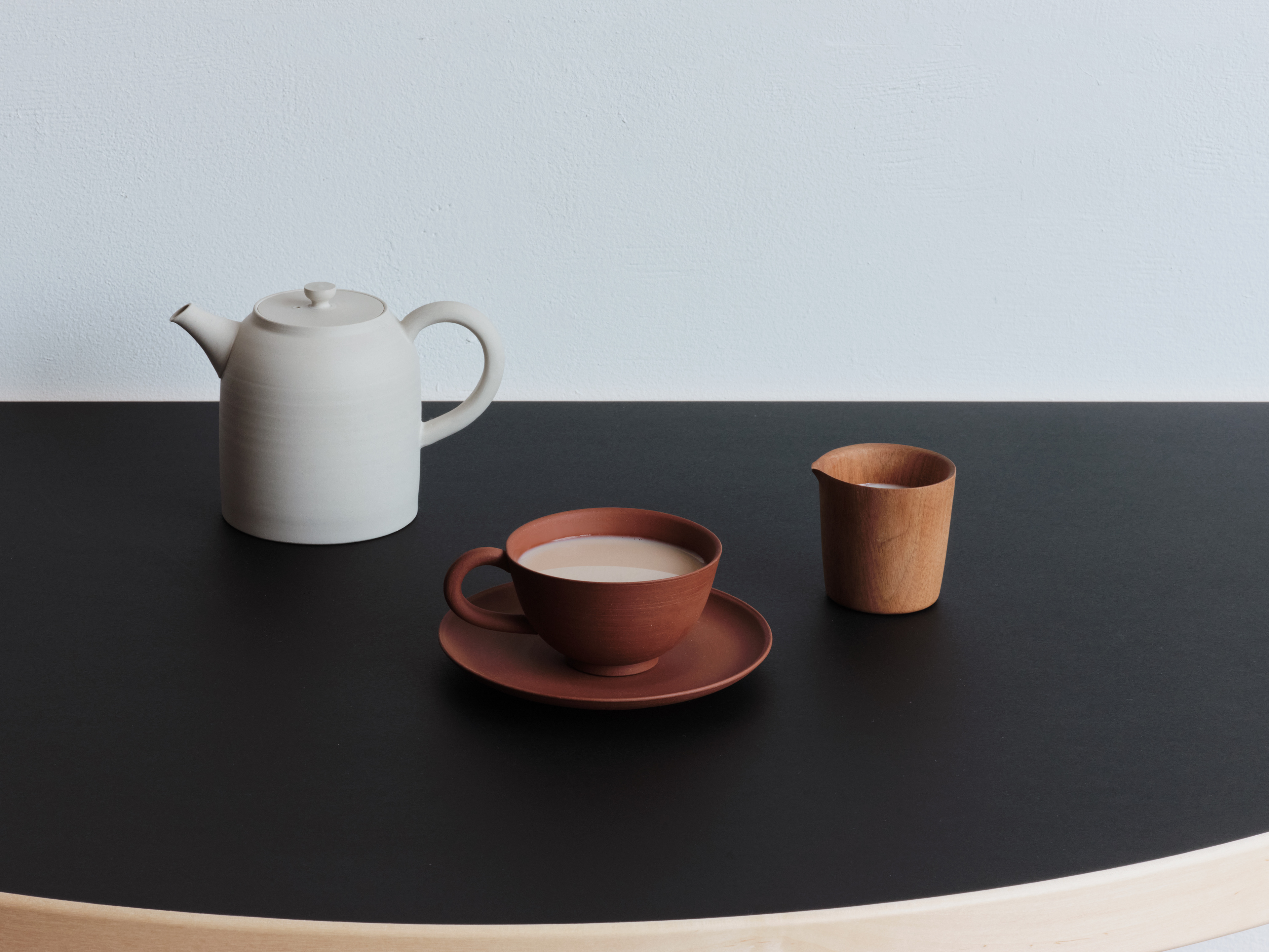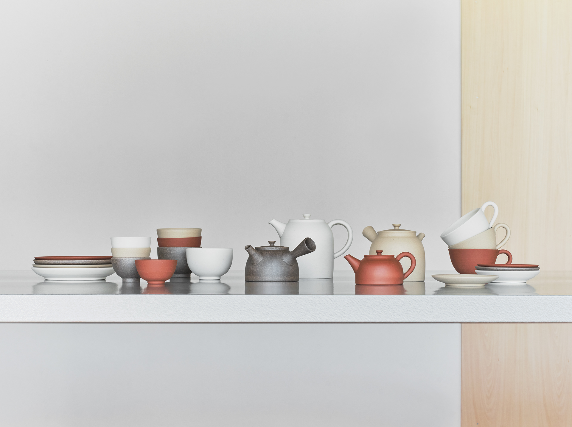 常滑の茶器専門問屋、丸よ小泉商店がプロデュースする茶器シリーズchanomaの第二弾chanomaⅡの企画デザインを行いました。常滑の急須の名手3名と協同し、4種の土で注器4型、皿と碗を計5型デザインしました。