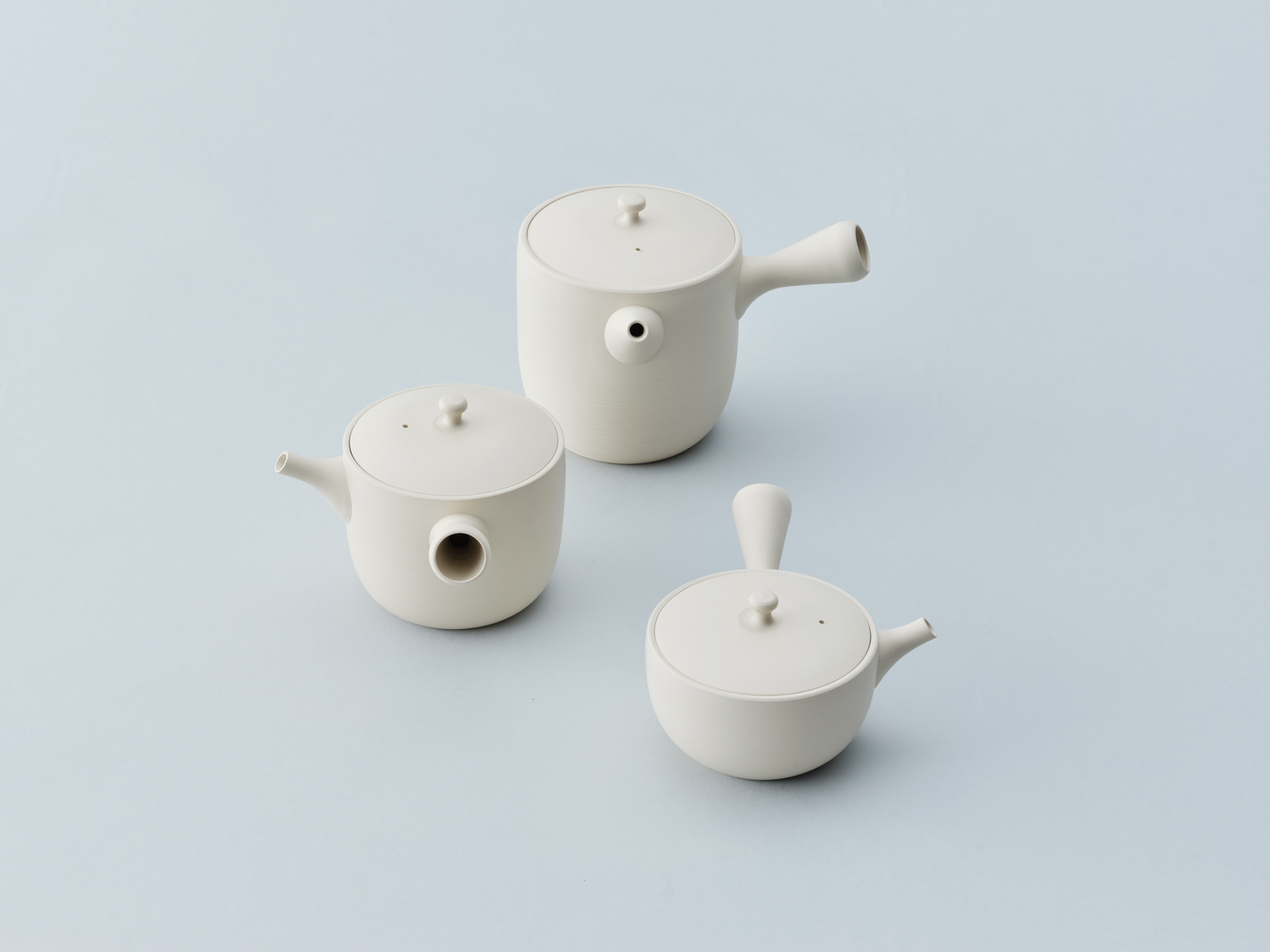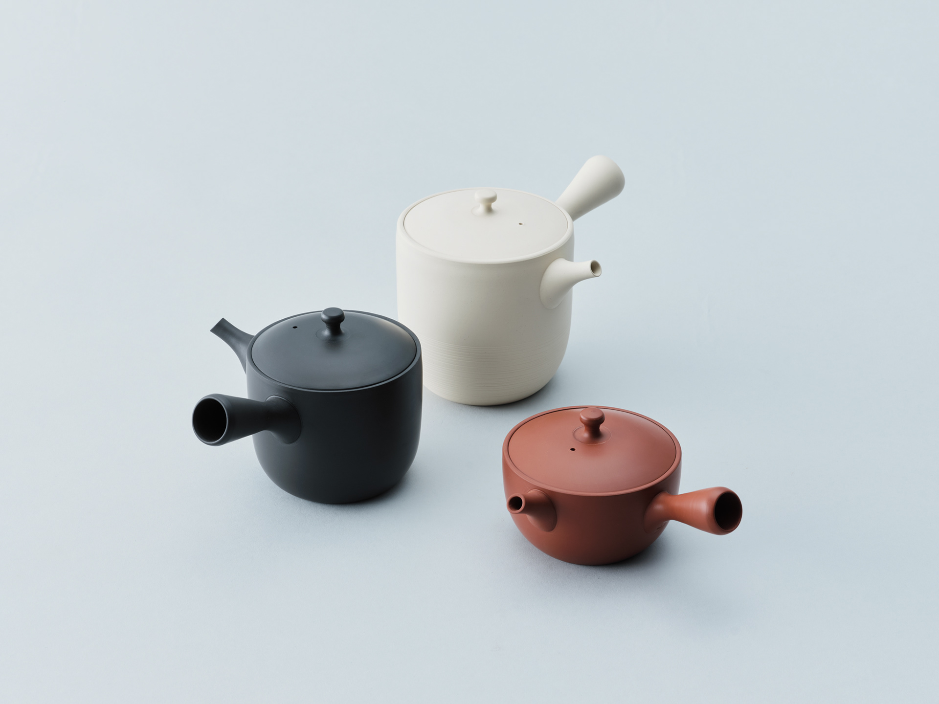 常滑の茶器専門問屋、丸よ小泉商店がプロデュースする茶器シリーズchanomaの企画デザインを行いました。「茶の間」を空間だけでなく、時間とも捉え、生活に「間」をもたらすための道具として企画しました。白泥を中心に、朱泥、黒泥の3色です。制作を担う陶仙陶園は、練り込みと呼ばれる多色の土を用いて炻器質のやきものをつくってきました。chanomaは釉薬を用いず、土自体が色を帯びた張りのある炻器質のやきものです。