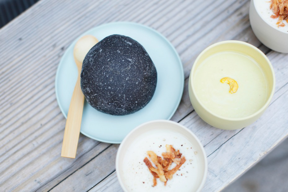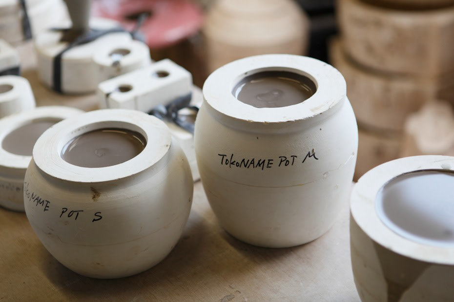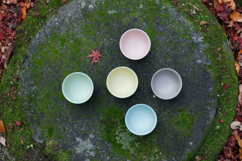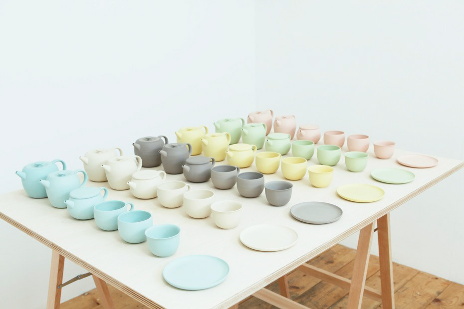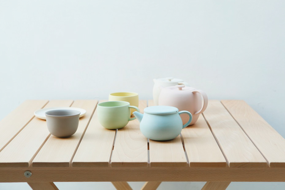 常滑の精土工場で出会った、色土の炻器サンプルに魅了され、その土を使って触りたくなる、まあるい朗らかな茶器をデザインした。